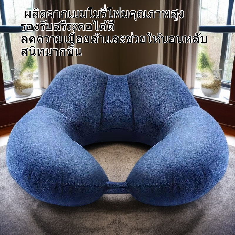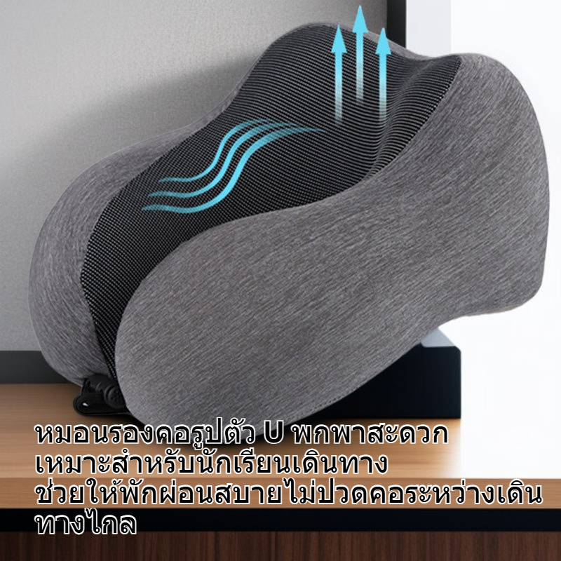 หมอนรองคอรูปตัว U แบบพกพา เหมาะสำหรับนักเรียนที่เดินทาง หมอนรองคอสำหรับนอนหลับ หมอนบนเครื่องบิน หมอนรองคอเมมโมรี่โฟม